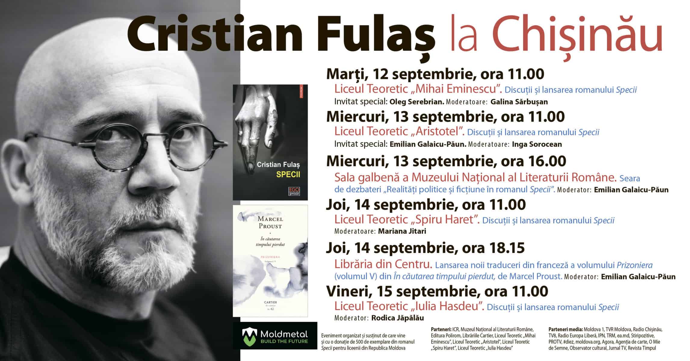 Vezi mai mult 13 septembrie Cristian FULAȘ, scriitorul lunii septembrie la Chișinău str. Alexei Mateevici, nr.79 Chișinău, Moldova, Republic of 16:00 - 18:00