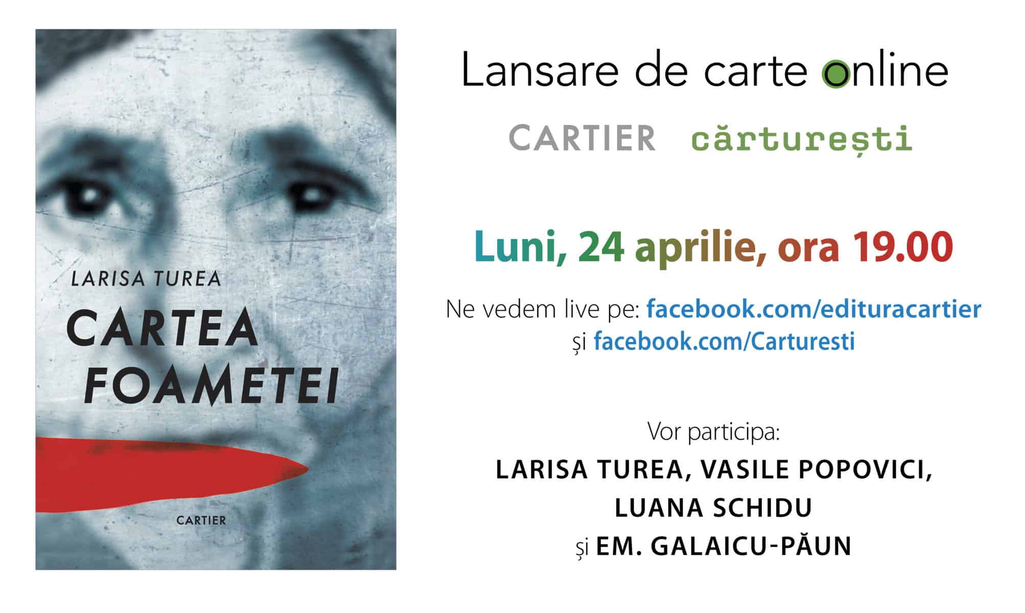 Vezi mai mult 24 aprilie Lansare de carte online: Cartea foametei, de Larisa Turea Online 19:00 - 20:00