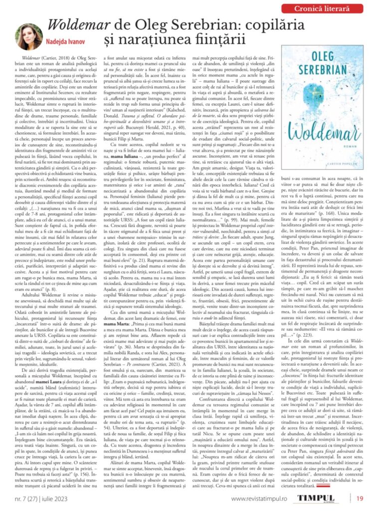„Woldemar este un roman psihologic, o autoanaliză a unui tânăr despre identitatea sa, despre tot ce-l face într-atât de deosebit de semenii lui. E vorba de o povestire foarte atrăgătoare despre o copilărie într-un ambient particular, împărţită între frumoasa natură a Bucovinei, în mediul ţărănesc, dar şi în ceea ce mai rămase din mediul vechilor elite intelectuale ale Cernăuţiului de odinioară. Woldemar ascultă cu nesaţ amintirile bunicilor săi, aşa încât se poate spune că trăieşte mai mult în trecut decât în prezent, într-o lume ideală şi nu în cea reală. Întregul roman este impregnat de contradicţii şi tensiuni permanente între realitate şi imaginar, între trecut şi prezent, între masculin şi feminin. Avem de a face cu un roman de dezvoltare, de devenire, cu istoria unui băiat hipersensibil şi inteligent în cel mai înalt grad, frământat de îndoieli privind identitatea sa, dar şi cu un roman despre Bucovina sovietică în cea de-a doua jumătate a secolului XX, un roman al moravurilor, care aruncă o lumină fascinantă asupra societăţii din această provincie de la periferia URSS.” (Klaus Bochmann, prof. univ. dr., filolog şi critic literar, membru al Academiei Saxone de Științe din Germania)