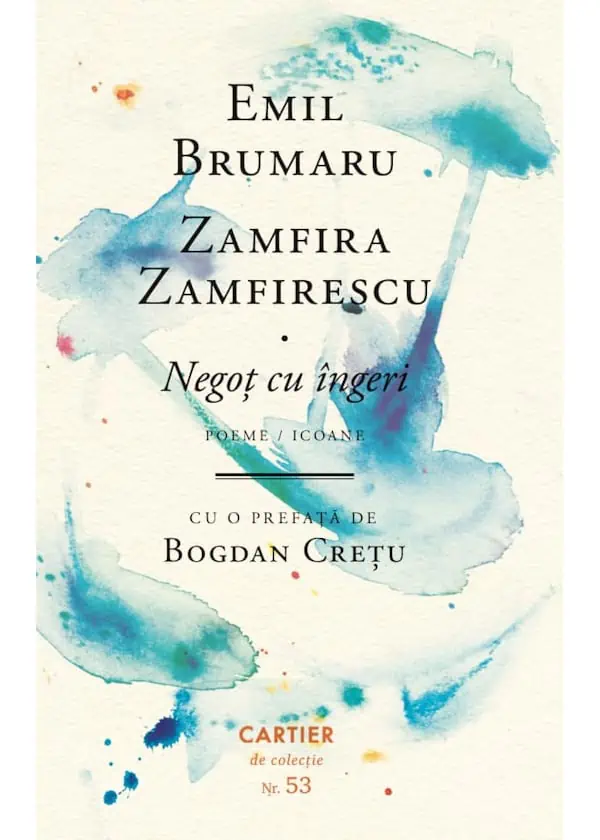 „Negoț cu îngeri e o carte-expoziție. 0 carte cu doi autori, care devin unul singur. În esența ei, e o carte despre delicatețe, candoare, puritate. Și despre visare. 0 carte pentru copiii mari.” (Bogdan Crețu)